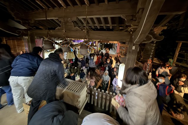 各地の御神体には特色があり、画像のように竹に挟んでいるもの、お社があるもの、箱に入っているもの、籠に入っているものとお祭りの仕方は様々